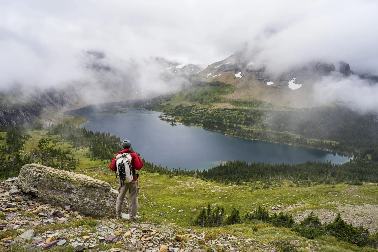 We had picked several hikes and possible backpacks outside of Glacier in the Bob Marshall Wilderness Complex with the front runners being Ousel Peak and Holland Lookout. But with the weather not cooperating yet again we scrapped plans to climb Ousel and headed to the Holland Lake area which was to have slightly better weather. That morning we woke up to what appeared to be clearing skies, so with our objective still clouded in but with high hopes of better things to come we set off into the mist. Several hours later and about 4000 feet in elevation gain we stood staring at very socked in Holland Lookout. We had rolled the dice on the weather and lost big time. Wet and tired we retreated to our campsite only to find the rain had decided to move in for the evening, and a new precedent being set for the term morning showers. As luck would have it the next morning we awoke to blue skies and what would have been unclouded views from Holland Lookout.